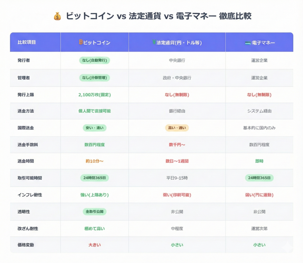 法定通貨・電子マネーとの違い