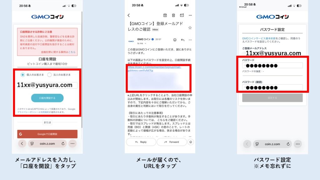 無駄な前置きは省いて、早速GMOコインの口座開設方法を解説しますね。