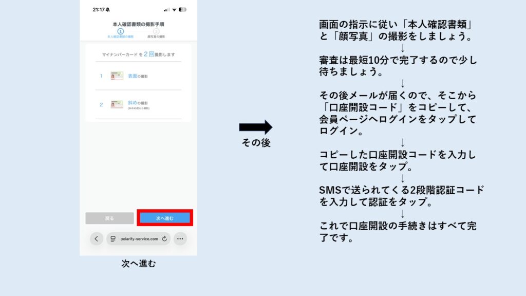 画像の通りに手を動かせば迷うことなく簡単に口座開設できます!