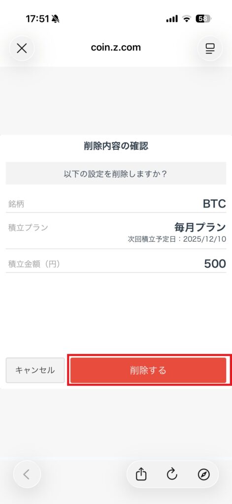 完全に積立を止めたい場合は、前述した「積立設定の削除方法」を参考に設定を削除してください。