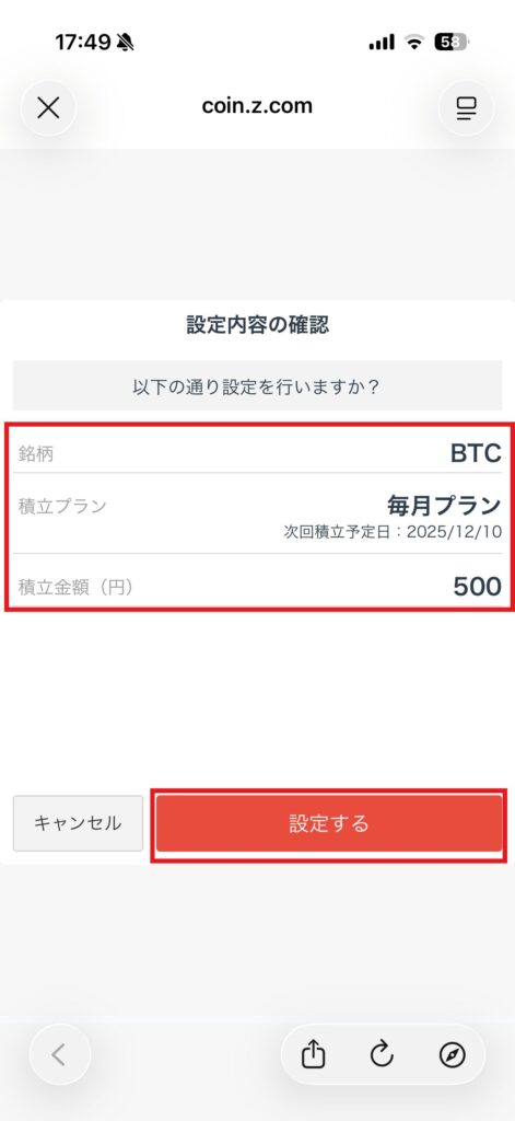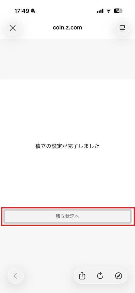 5,積立設定が完了しました。赤枠タップで積立状況を確認できます。