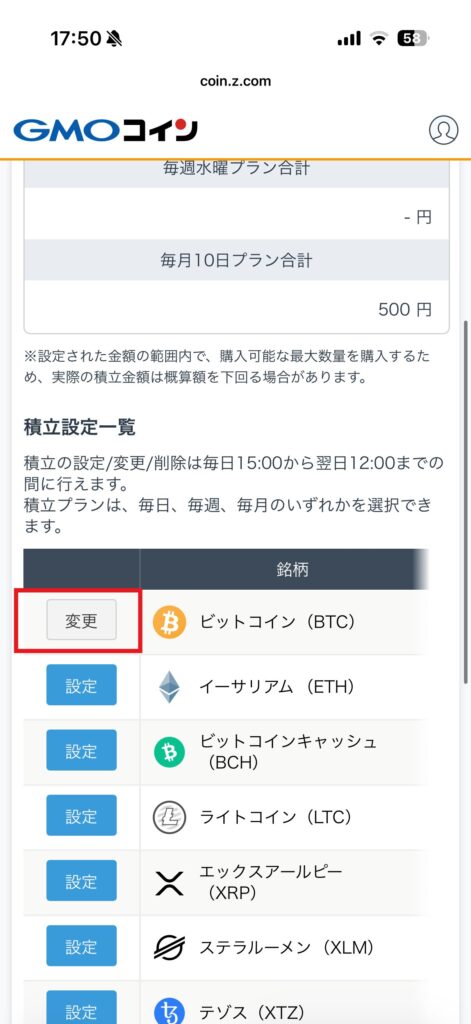【画像付き】GMOコインで暗号資産の積立設定の変更やり方