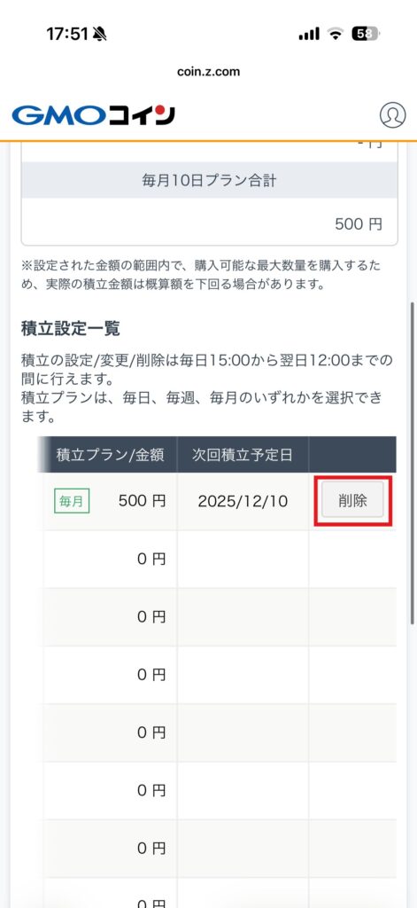 【画像付き】GMOコインで暗号資産の積立設定の削除・停止やり方